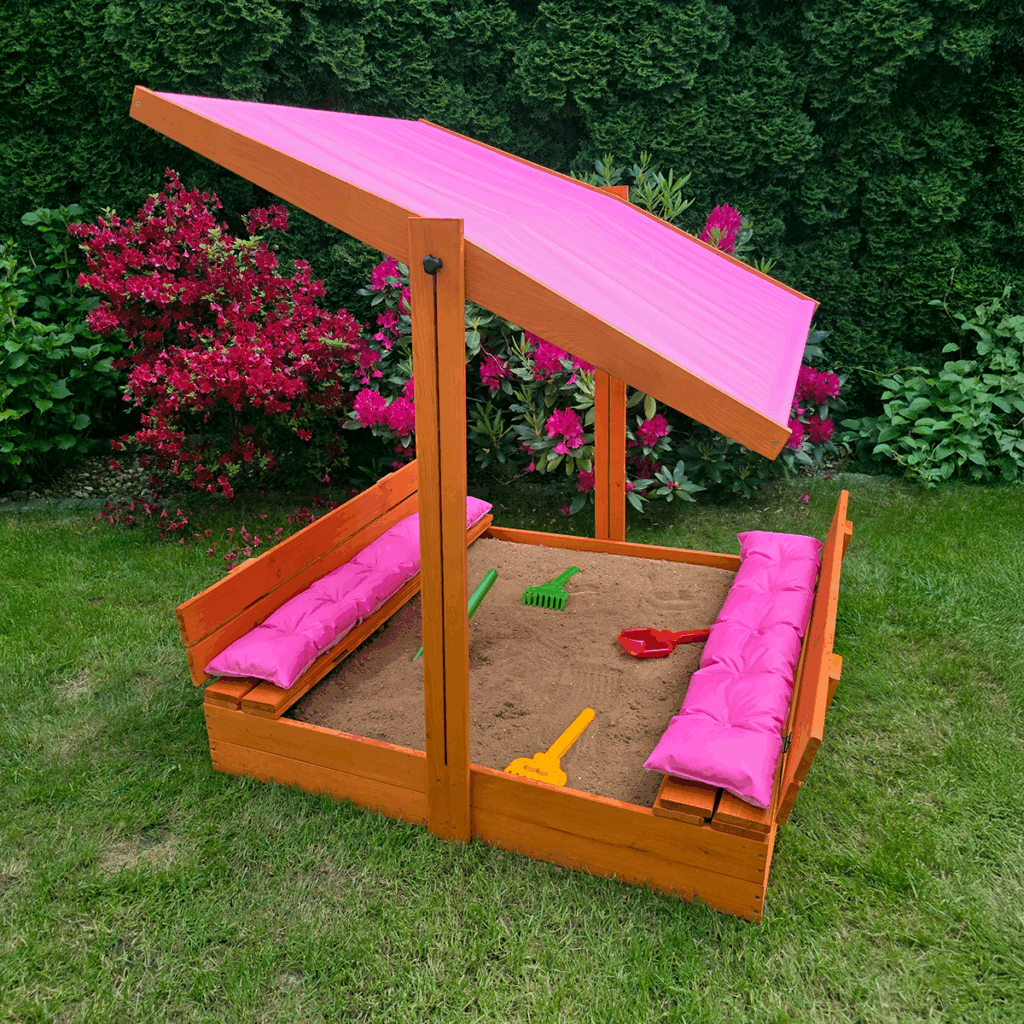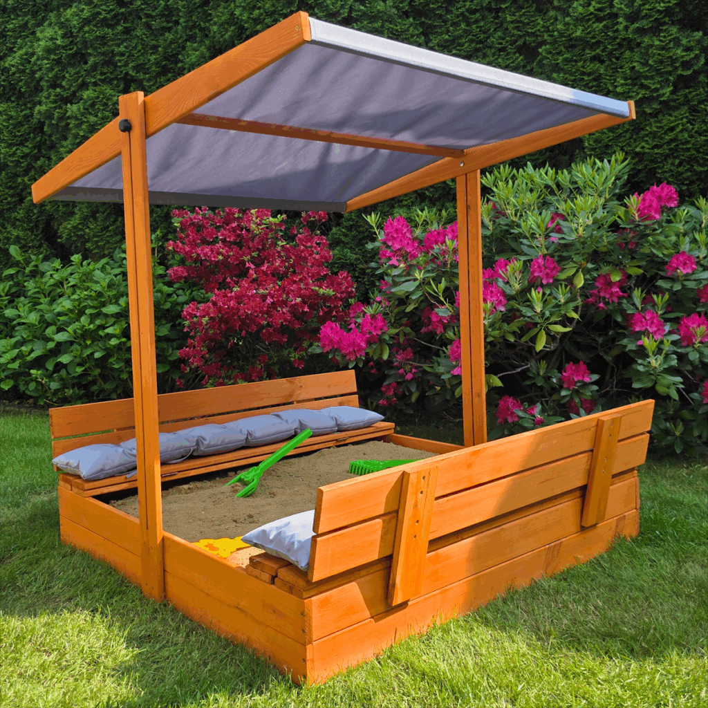 Dostępne kolory poduszek zostały dobrane tak, by idealnie współgrały z daszkami naszych piaskownic. Dzięki temu możesz stworzyć spójną, estetyczną całość w ogrodzie – bez przypadkowych dodatków. Czy wybierzesz stonowaną szarość, słoneczny żółty, delikatny róż czy żywy błękit – wszystko będzie wyglądać harmonijnie.